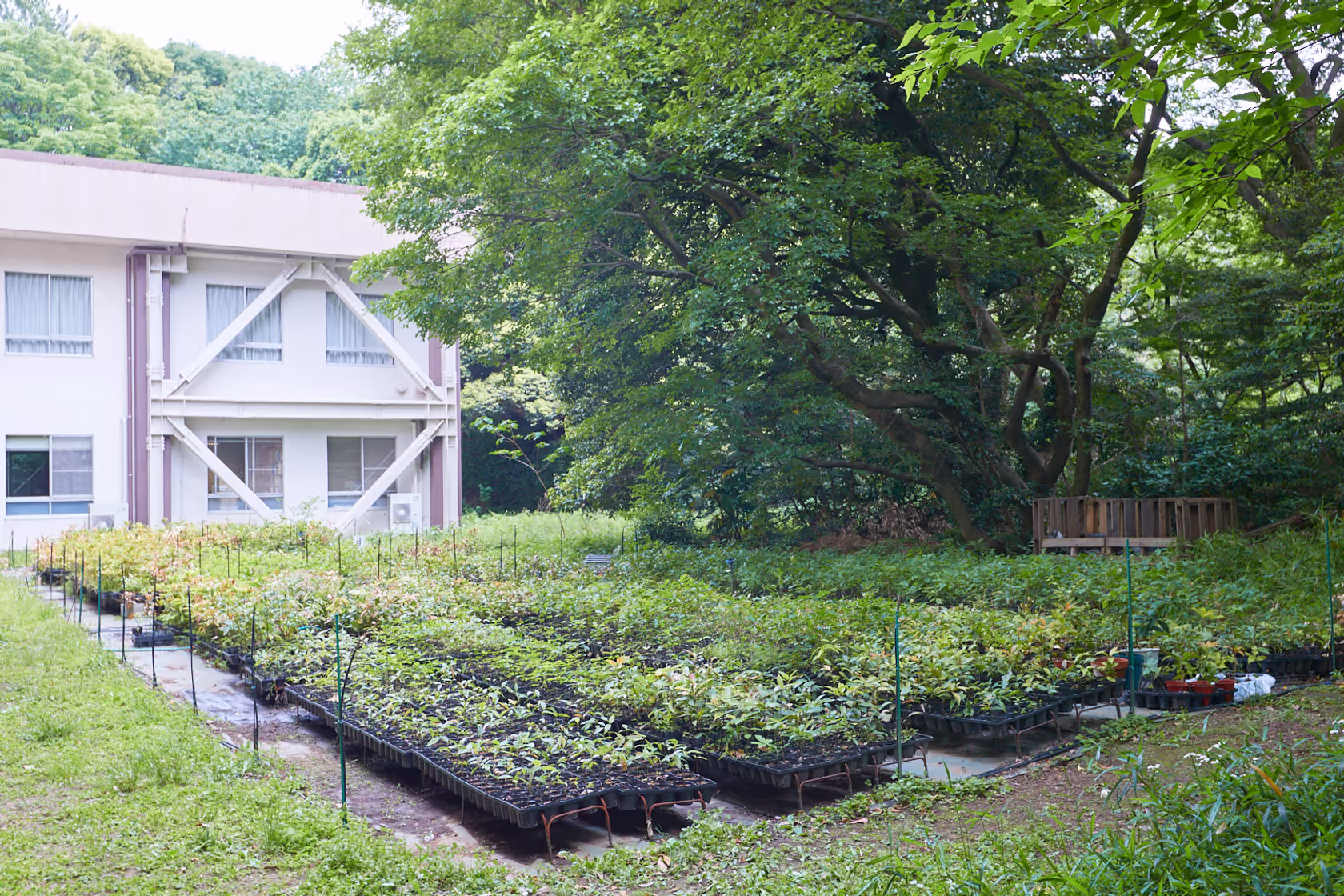 採取したどんぐりの実を、種類や年代ごとに整理をしたり、雑草取りや成長した苗の植え替えなどを行い、苗木の管理作業をしています。