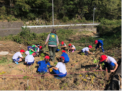 高萩市の小学生を招いての野外活動イベント。今年は高萩SFの自然の中での身体をつかったあそびのほかに、公益財団法人日本花の会からいただいた桜の苗と、NPO法人響(ひびき)からいただいたどんぐりの苗を植える活動にも取り組んでいただきます。