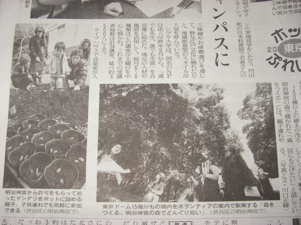 【掲載情報】シブヤ大学授業「森を作る、明治神宮の杜でどんぐり拾い」掲載